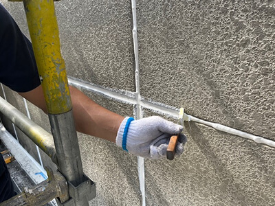 その後、下地の状況に応じクラック補修、シーリング補修を行います。