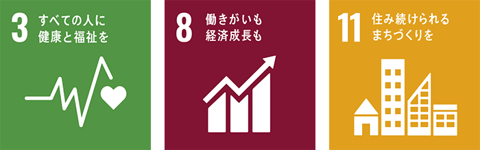 改修工事を通じて、建築物・構築物の長寿命化を実現し、「廃棄物の削減」「住み続けられるまちづくり」に貢献します。